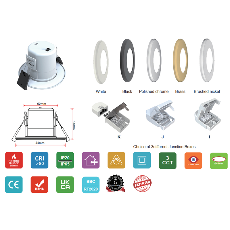 5W CCT adjustable fireproof downlights