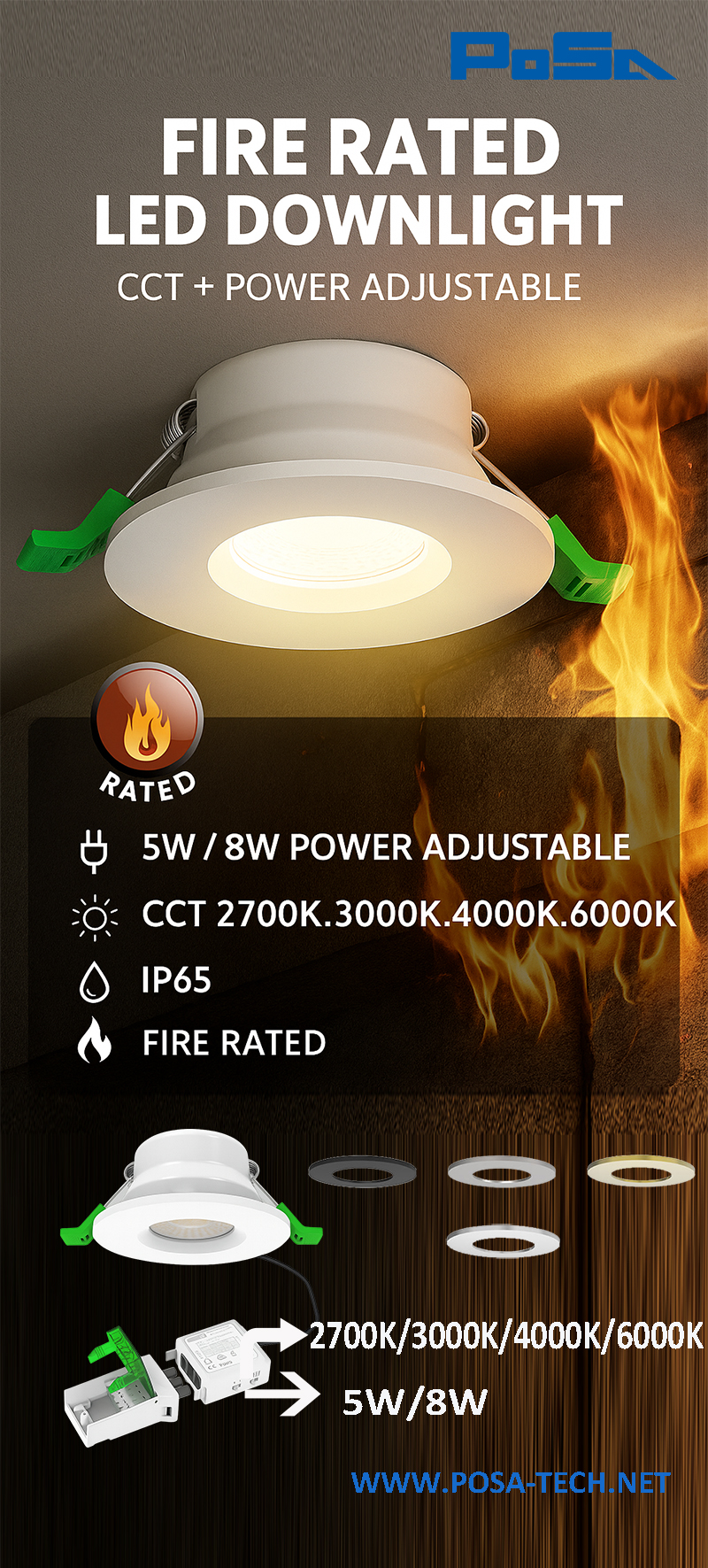 8W CCT adjustable/ Power adjustable fireproof downlights